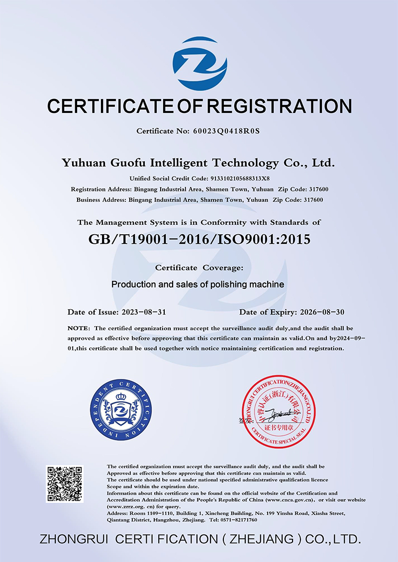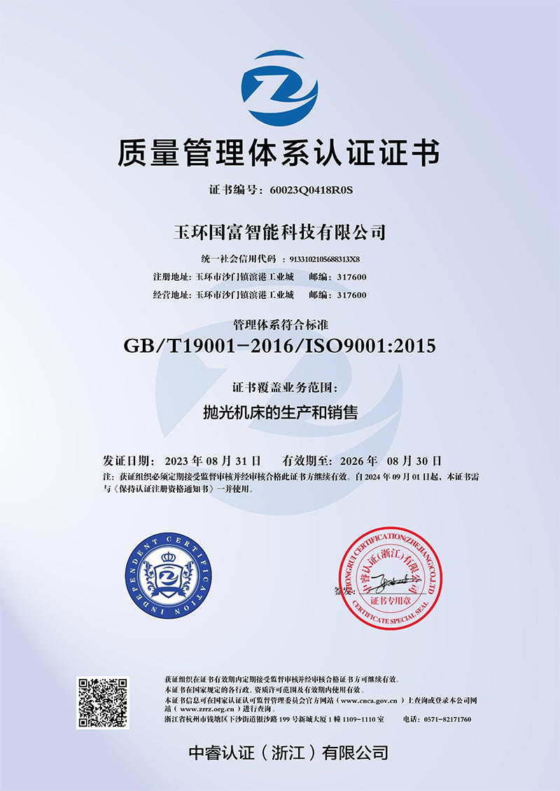 台州国富智能科技有限公司是一家集开发、设计、生产、销售、售后服务为体的专业表面处理设备制造企业。主要从事生产抛光机、拉丝机只、砂光机、打磨机等表面处理设备。目前更着重于为广大新老客户解决非标产品表面抛光拉丝打磨的技术难题,为客户产品量身订做专用智能化抛光机、拉丝机、打磨机,达到效率高,品质好,成本低的效果。目前我司产品主要针对的行业有灯饰、水暖卫浴、电子电器、餐厨具、运动器材、家具、车料、机箱机柜、道具货架等铁、铜、铝、不锈钢、锌铝合金等金属打磨抛光拉丝处理。