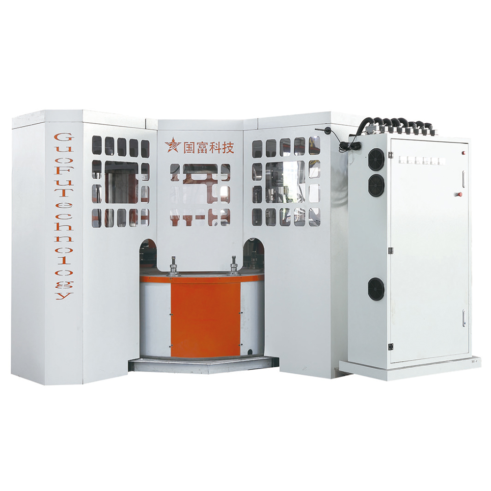 The disk adopts the principle of divider,the movement of the disk can be intermittent operation according to the process requirements,and is  equipped with a frequency converter to control the speed of the disk, depending on the process requirements of the product,the product  can  be  coarse  throw,fine  throw,and  other  flow  type  operations, only one worker loading and unloading parts,simple and convenient  operation,the operator does not have too high technical requirements. The machine is also equipped with fault alarm function,which can automatically display the cause of the fault to protect the normal operation of the equipment.